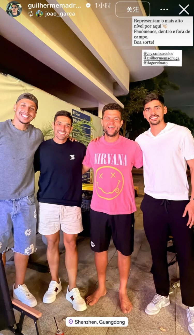 10月20日讯 今日,泰山队外援马德鲁加更新社媒,晒出和队友克雷桑等的合影,定位显示几人在深圳。